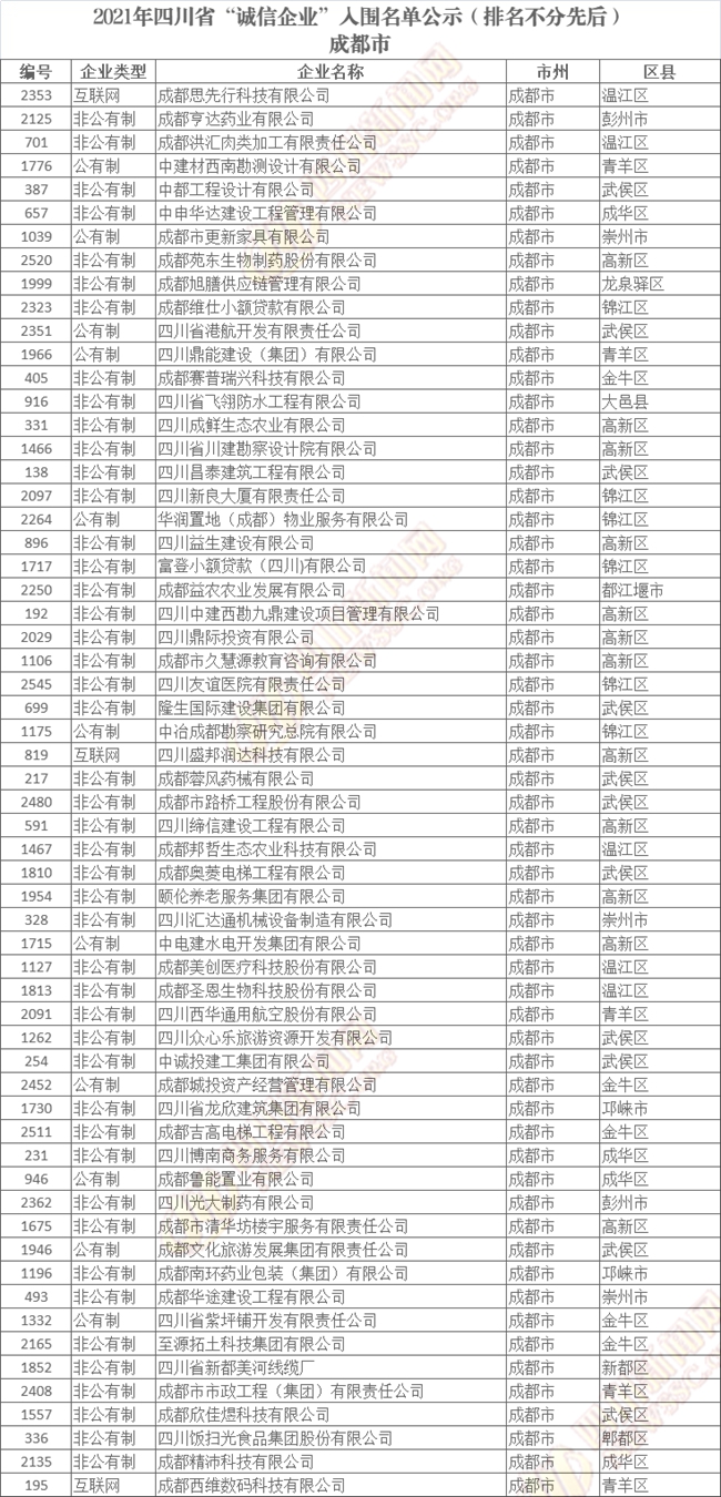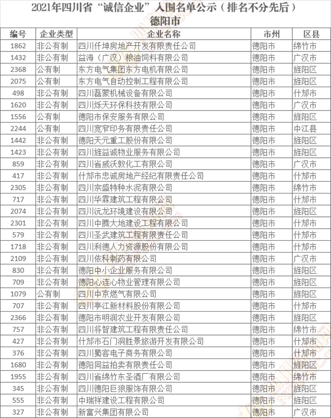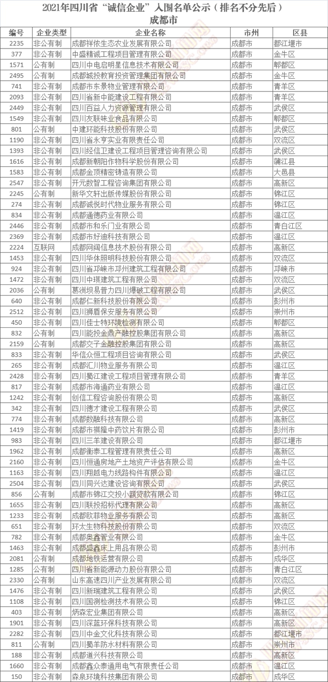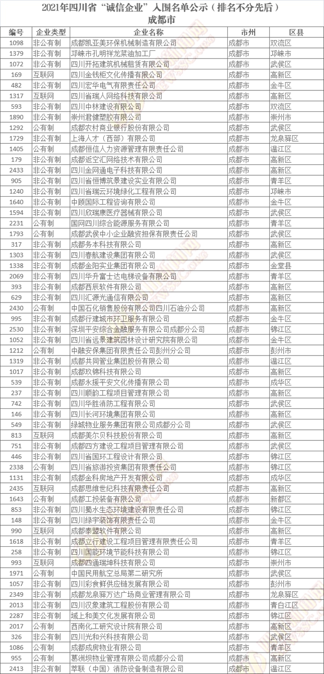自2021年6月15日網(wǎng)絡(luò)報名通道開通以來,四川省“誠信企業(yè)家”及“誠信企業(yè)”評選宣傳活動得到了廣泛關(guān)注。經(jīng)過初審、網(wǎng)絡(luò)投票和專家評審,最終評選出了“誠信企業(yè)家”100名;“誠信企業(yè)”1000家。于9月14日在四川新聞網(wǎng)進行為期7個工作日公示。